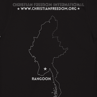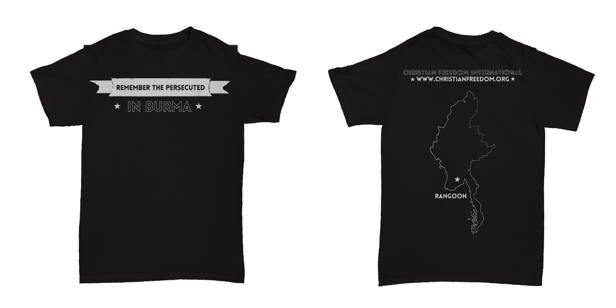 Front: “Remember the Persecuted – in Burma” Back: Christian Freedom International with outline of country.