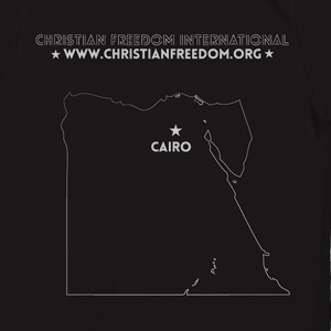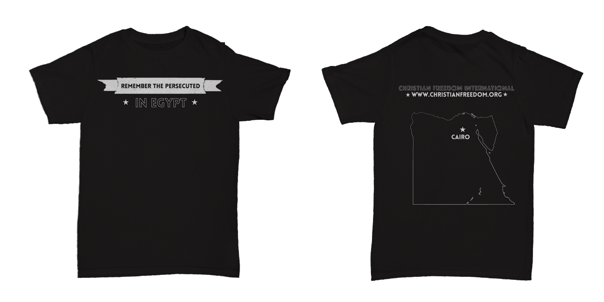 Front: “Remember the Persecuted – in Egypt” Back: Christian Freedom International with outline of country.