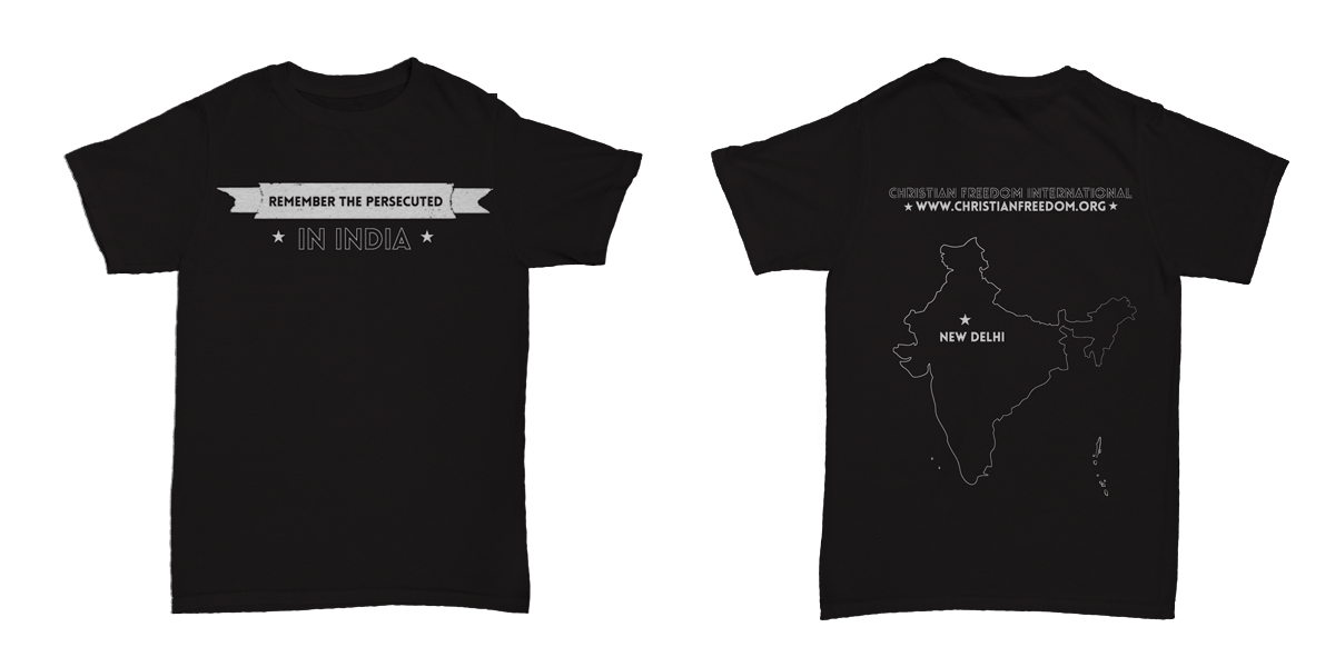 Front: “Remember the Persecuted – in India” Back: Christian Freedom International with outline of country.