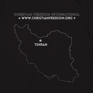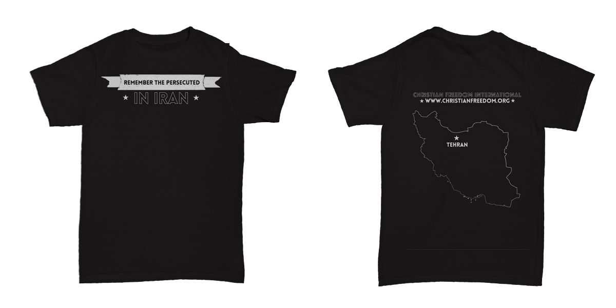 Front: “Remember the Persecuted – in Iran” Back: Christian Freedom International with outline of country.