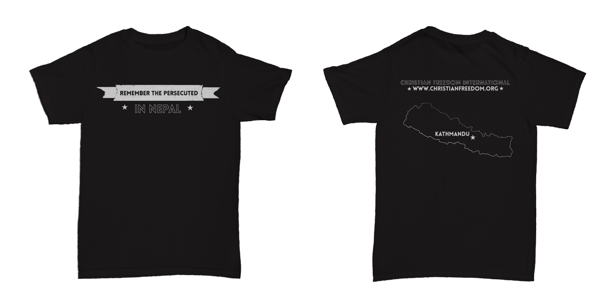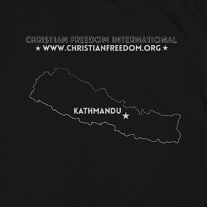 Front: “Remember the Persecuted – in Nepal” Back: Christian Freedom International with outline of country.